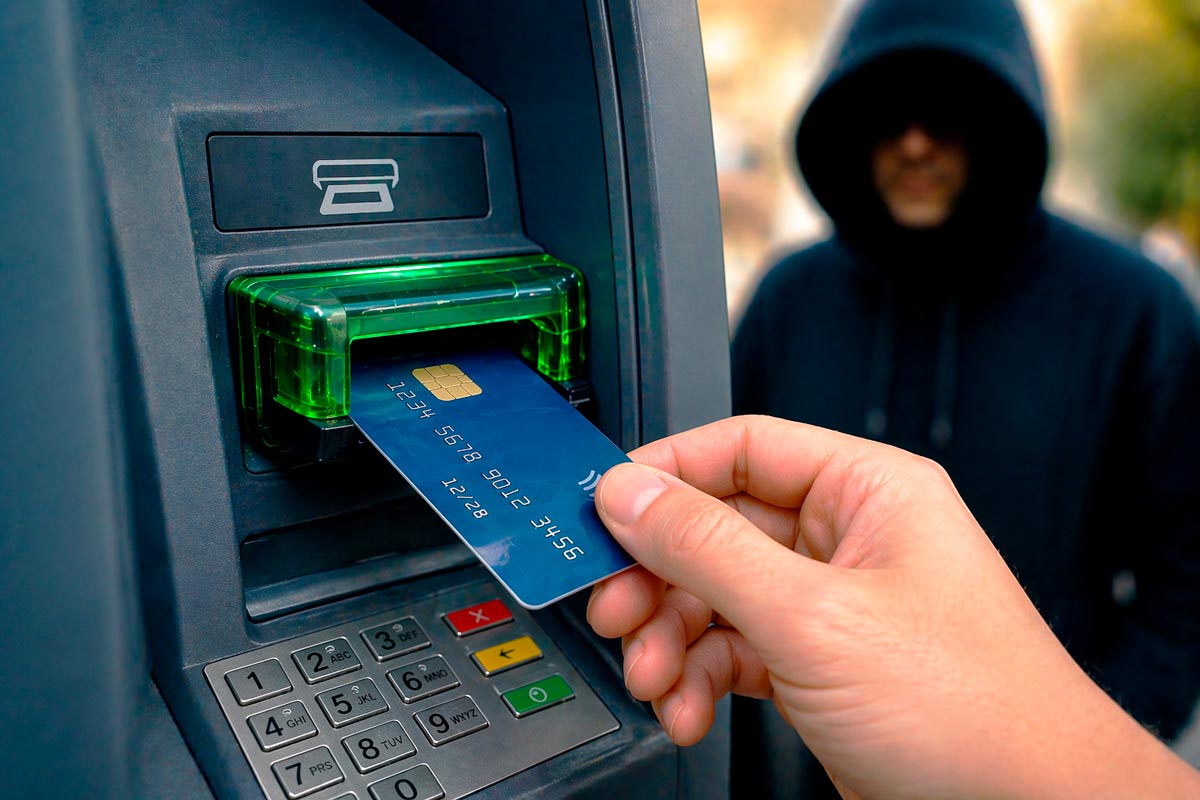 Quando a vítima tenta retirá-la, o criminoso pode estar a observar à distância, com recurso a câmaras ocultas, ou a aproximar-se com o pretexto de ajudar — tentando perceber o PIN ou influenciar a operação em curso.