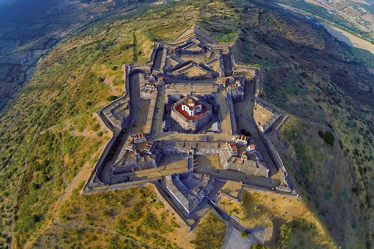 Almeida é uma vila da Guarda que é fortificada por uma muralha com formato de estrela de 12 pontas.